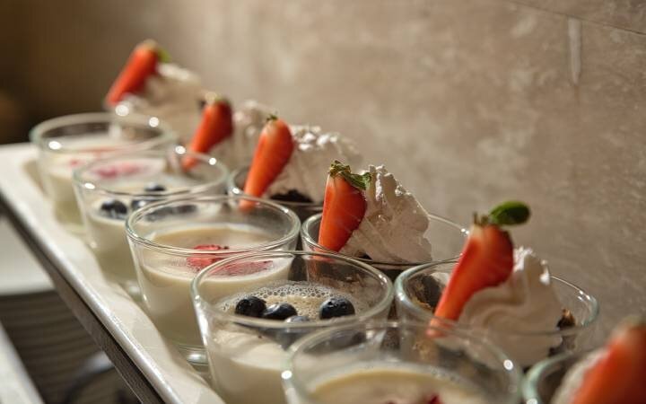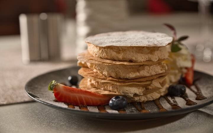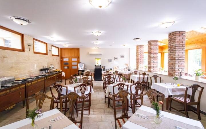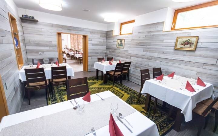 Vendégeinket svédasztalos reggelivel és vendéglétszámtól függően menüválasztásos vagy svédasztalos vacsorával várjuk. Ez utóbbi esetén kétféle levesből, három főételből (melyből egy mindig vegetáriánus) választhatnak vendégeink. Saláta és desszert természetesen szintén része a kínálatnak. Menüválasztásos étkezésnél háromfogásos vacsorát kínálunk, azaz leves, főétel, desszert szerepel a menükártyán. Vegetáriánus és gluténérzékeny vendégeinknek egyedi menüajánlattal készülünk, előzetes egyeztetés alapján!